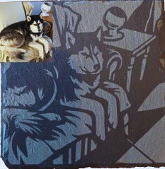 Have your furry friend, or pets picture laser engraved onto a durable slate coaster!